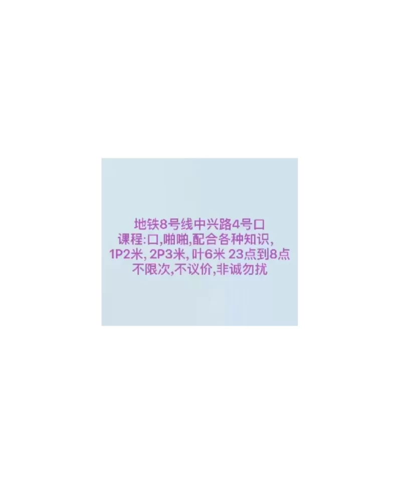 上海最便宜熟女 该文章被用户投诉为:联系方式失效,增加联系方式并审核通过后可自动删除投诉标记 [增加联系方式] 疑似失效 联系方式已被举报失效/虚假,请谨慎购买 2025-03-31 0 静安 外围小姐